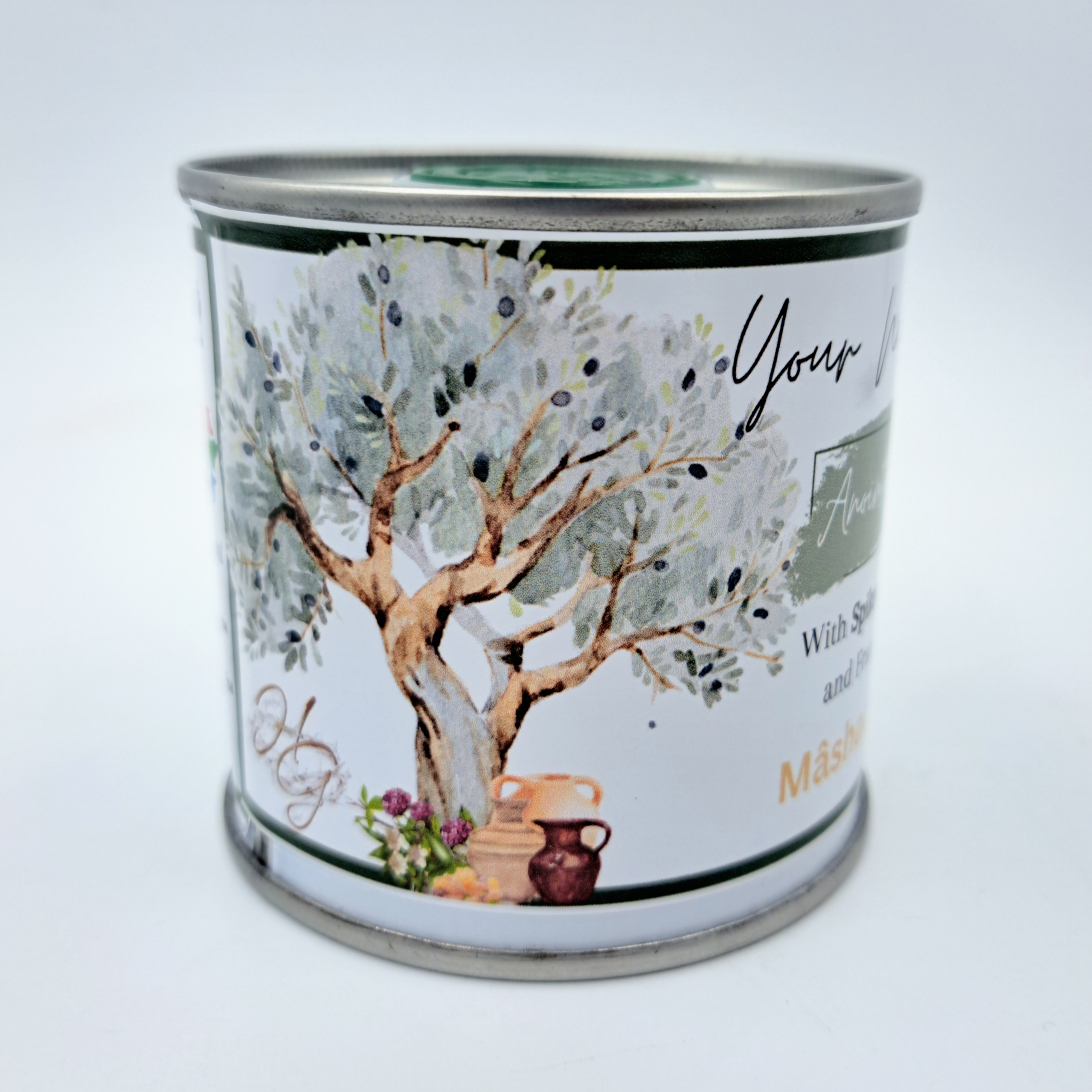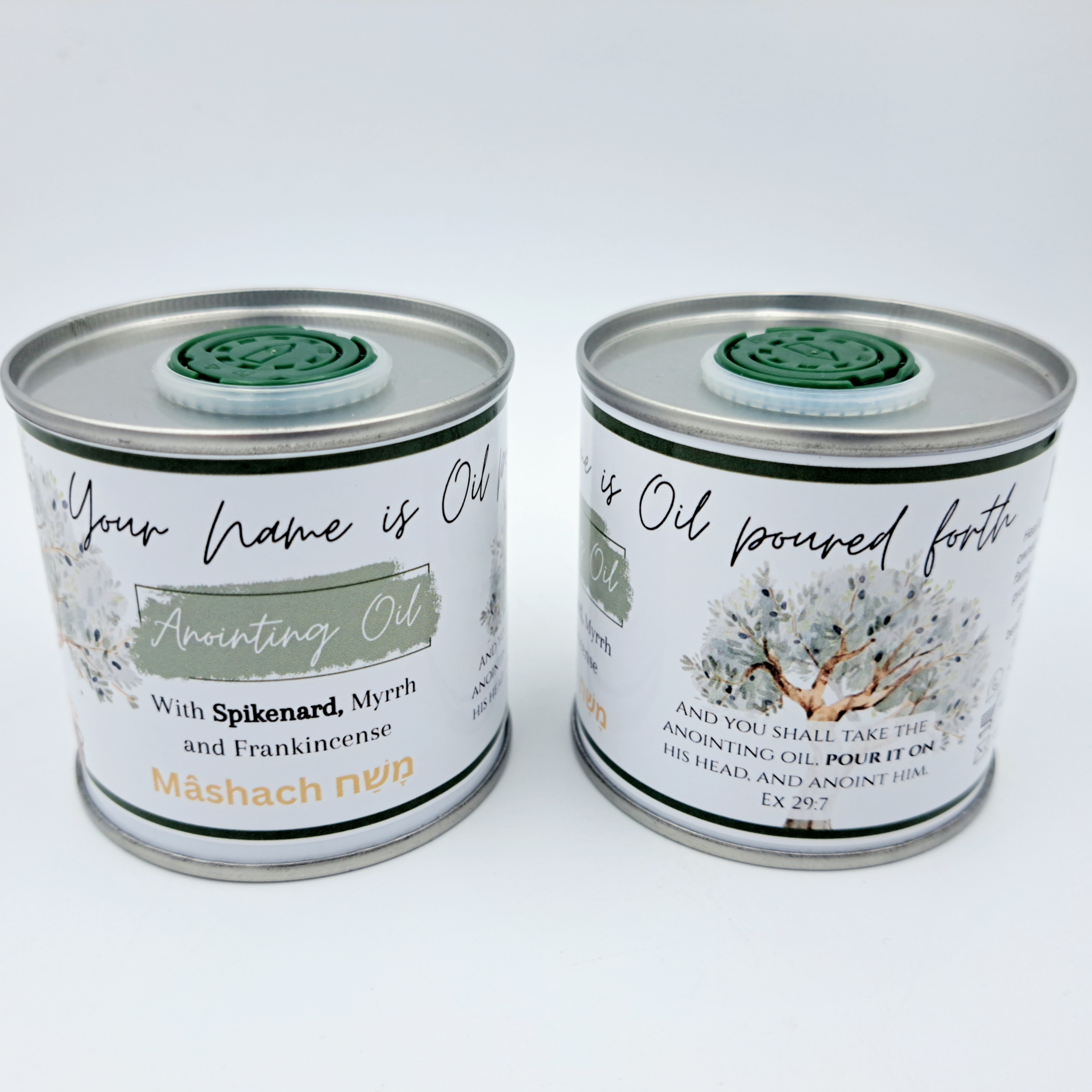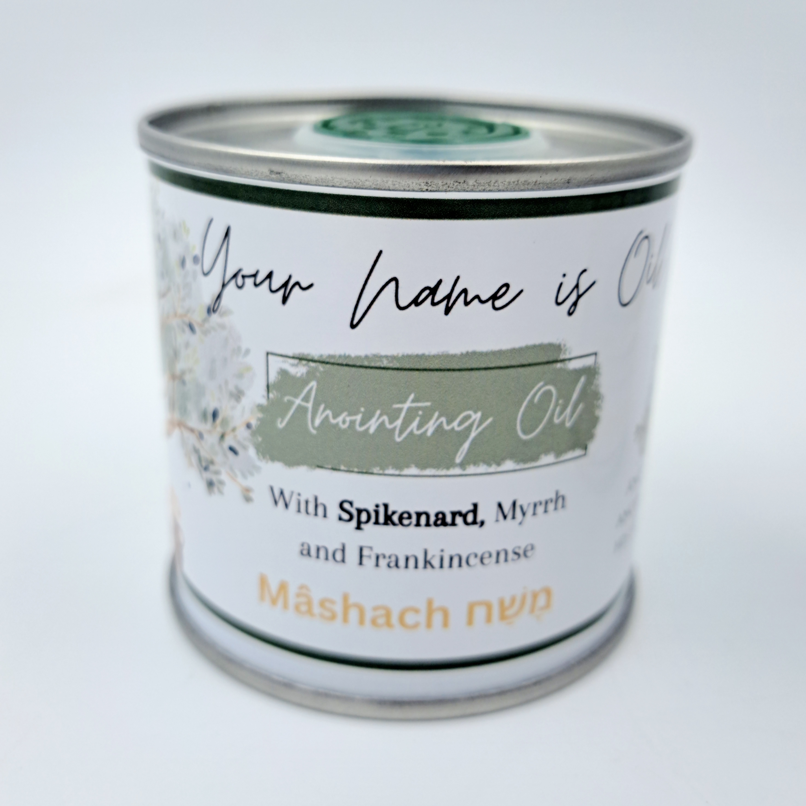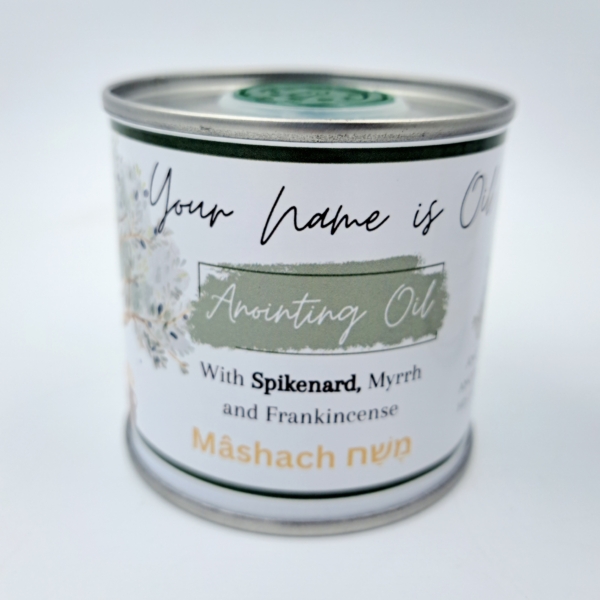 This is a 100ml in a beautiful tin with special label. Designed in prayer. May this oil and label bless you.