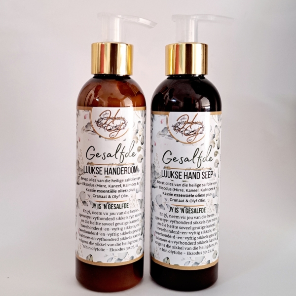 Luukse handeroom EN hand seep met essentiele olies en kosbare skrif.