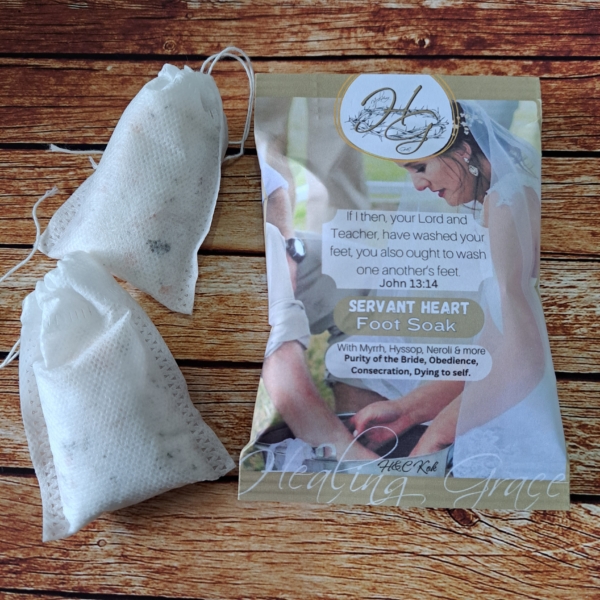 This beautiful bag contains 2x foot soak tea bags with amazing biblically inspired oils and herbs.